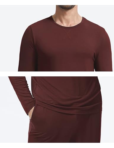 GYS Bamboo Viscose Men's Pajama Sets Long Sleeve Crew Neck Lounge Set with Pockets 5