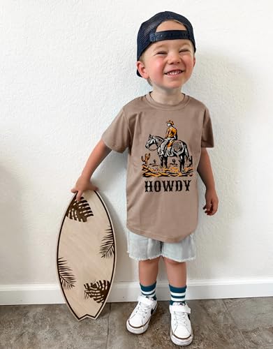 Toddler Baby Boys Western T-Shirt Rodeo Howdy Graphic Shirt Kids Cowboy Outfits Summer Country Crewneck Tee Top