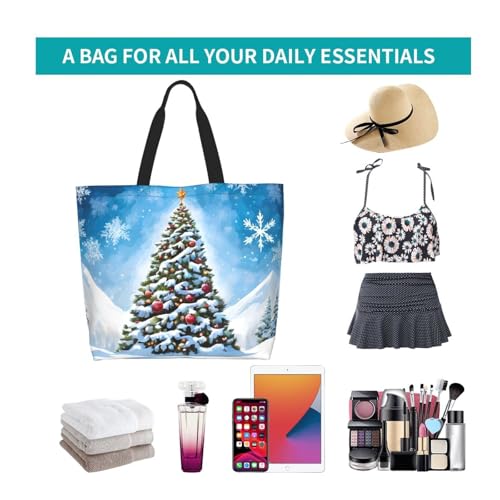 Women'S Large Capacity Christmas Trees Shoulder Shopping Bag,Tote Storage Bag,Simple And Fashionable Shoulder Bag For Travelling,Beach,Gym,Working.