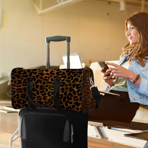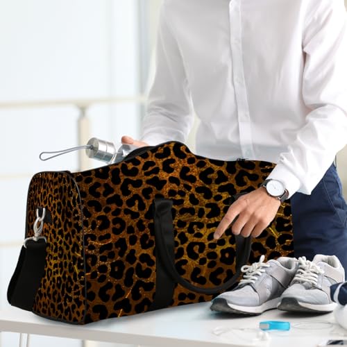 Leopard Print Gold Skin Travel Duffle Bag Sports Gym Bags for Women Men Weekender Overnight Bags Waterproof Carry On Tote Bag Workout Bag for Dance Swimming Yoga Hospital
