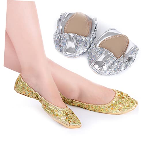 Why Choose 1pair Slip Sequin Latin Dance Shoes Comfortable Round Plate Style Gold Xl for Ballet Gymnastics and Contemporary Dance?