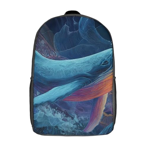 Psychedelic Whales Jumps Out Sea Unisex Backpack 17" Casual Daypacks Simple Shoulders Bag for Camping Hiking Travel Gear 1