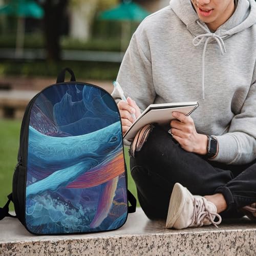 Psychedelic Whales Jumps Out Sea Unisex Backpack 17" Casual Daypacks Simple Shoulders Bag for Camping Hiking Travel Gear 5
