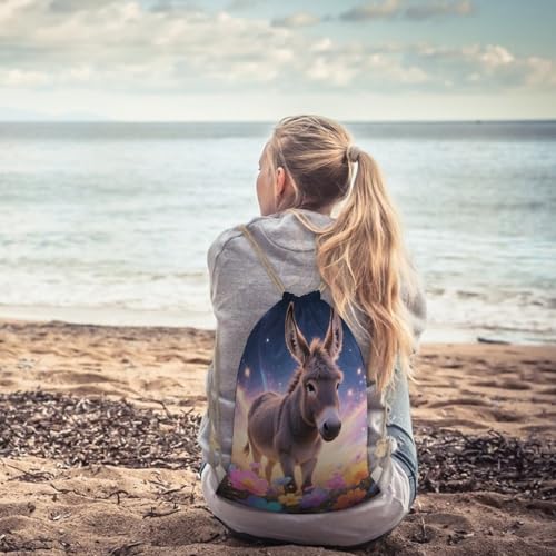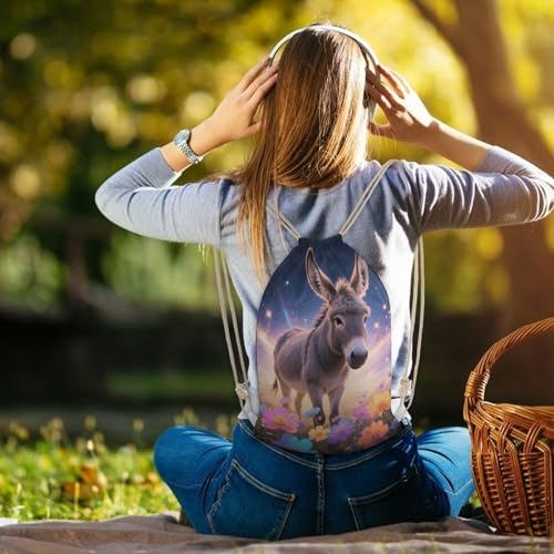 HOT ! Donkey in Magic Blooms Drawstring Backpack - Canvas Sports Gym Sackpack, Lightweight String Bag for Beach & Travel