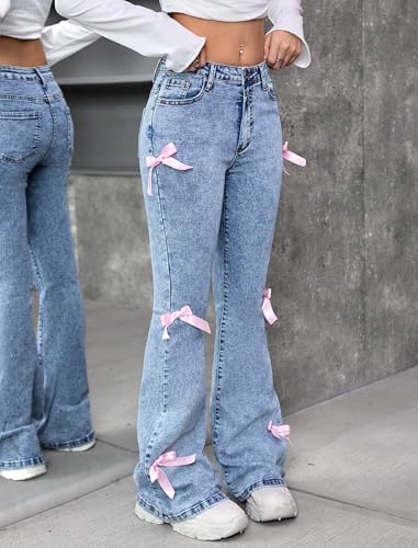 More information about Girls Jeans Flare/Bell Bottom Bow Jeans for Teen High Waist Cute Y2K Stretch Tween Denim Pants 8-16Y