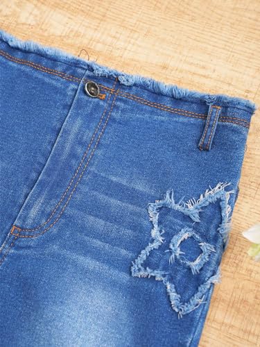 • Feature : Mid waist jeans with star pattern, frayed raw hem and bell-bottom design make your girl look both cute and stylish