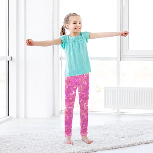 KLL Pink Glitter Texture Girls Athletic Leggings Fashion Full Length Lounge Pants Sports