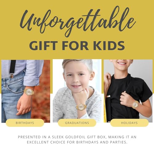 Item width: 14 millimetersClasp type: Deployment ClaspItem type name: WatchLUXURY MATERIALS: Utilizing 3D Electroforming Technology, the watch features a thick 18k real gold plating, enriching its color and providing a luxurious finishDAZZLING DIAMONDS: Adorned with VVS Clarity Prong Set Austrian Simulate Diamonds, meticulously handset to create a signature micro-pave style, ensuring brilliance and sophisticationEXQUISITE CRAFTSMANSHIP: Each product undergoes over 160 meticulous processes, including carving, high-temperature firing, and diamond setting, taking 72 hours to complete by seasoned jewelry craftsmen with over 20 years of experience. Handcrafted with precision by skilled artisans with over 15 years of experience, ensuring superior quality and attention to detailTRUSTED BRAND: With our own factory brand and a history of manufacturing for luxury brands, we prioritize quality over marketing costs, ensuring that our jewelry remains accessible without compromising on elegance or craftsmanshipTHOUGHTFUL PRESENT: Packaged in an specially designed branded Goldfoil Giftbox, our watches are the great fit present choice for kids, boys, and teens on birthdays, graduations, holidays, and other memorable occasions, ensuring a dazzling expression of love and luxuryRECOMMENDED AGE: 6 years old and up for boys or girls Perfect for everyday use. High quality materials and excellent craftsmanship ensure long-lasting durability.