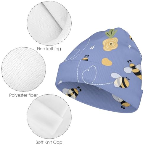 Cartoon Bee and Flower Pattern Kids Beanie Hat for for Girls Boys Children Cap Winter Knitted Chemo Cancer Headwear Accessories Gifts Decoration Black 7