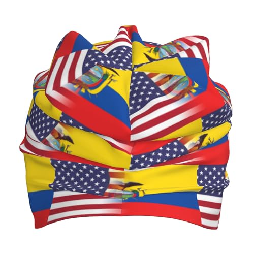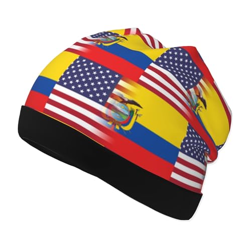 American Flag and Flag of Ecuador Kids Leisure Elastic Knitted Hat Junior Large Size Knit Cap Child Beanie Black