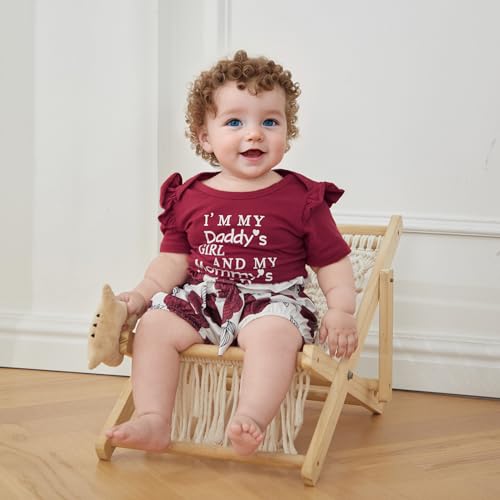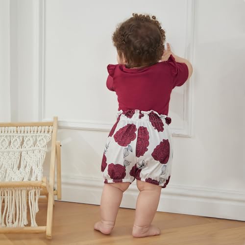 • Soft and Breathable---3 Pieces Baby Outfit for Girls 0-18 Months: 1 x short sleeve baby romper + 1 x baby bloomers shorts + 1 x headband.The baby romper dress set is made of cotton, which is soft and breathable, making your baby comfortable while sleeping or playing.Newborn girl clothes, baby girl outfit 0-3 months, baby girl summer clothes 3-6 months, 6-12 month girl clothes.