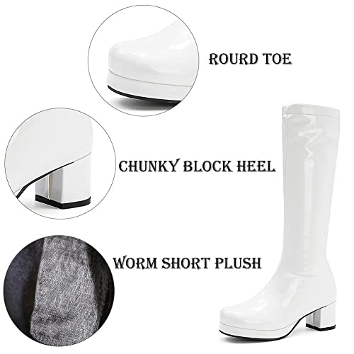 CELNEPHO Women's Fashion Knee High Boots, Round Toe Slim Chunky Mid Heel Platform Costume Mid Calf Go Go Boots For Christmas 5