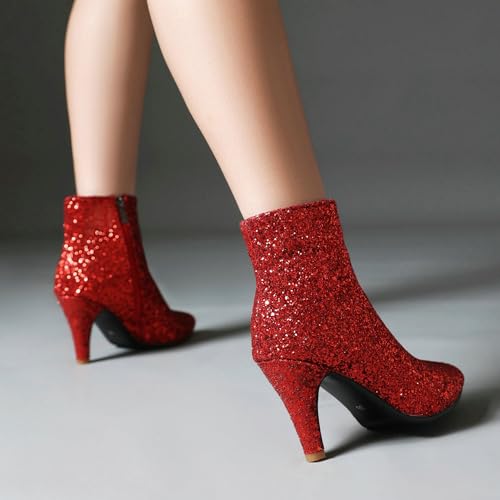UniqueStride Women's Sequin Glitter Ankle Boots Sparkly Kitten Heel Boots Pointed Toe Dress Party Wedding Booties with Zipper