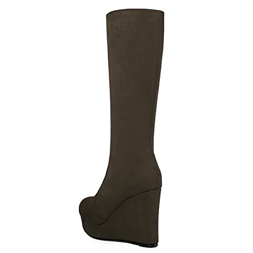 MERRORI Womens Knee High Boots Fashion Platform Round Toe Zip Night Club Suede Wedge High Heel Mid Calf Boots 4 Inch 1