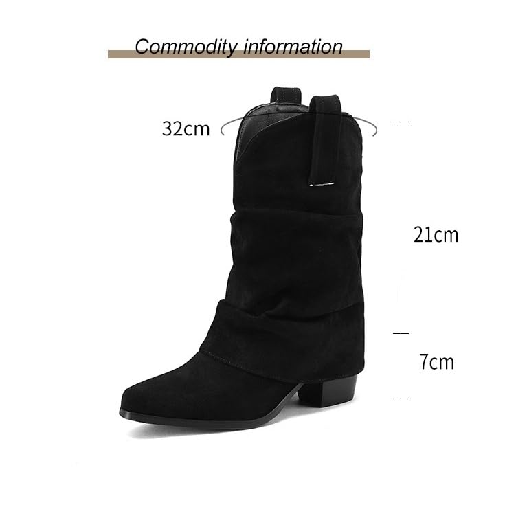 More information about Fold Over Boots for Women Cowboy Boots Pull On Chunky Heel Pointed Toe Boots Western Cowgirl Casual Mid Calf Boots