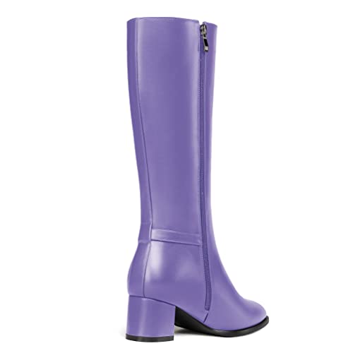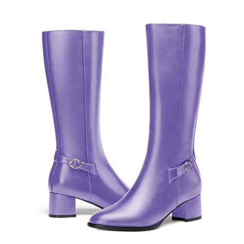 WAYDERNS Women's Round Toe Ankle Strap Matte Zip Chunky Low Heel Knee High Boots 2 Inch 5