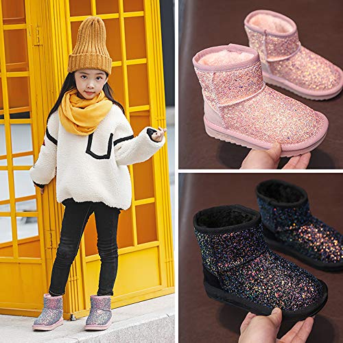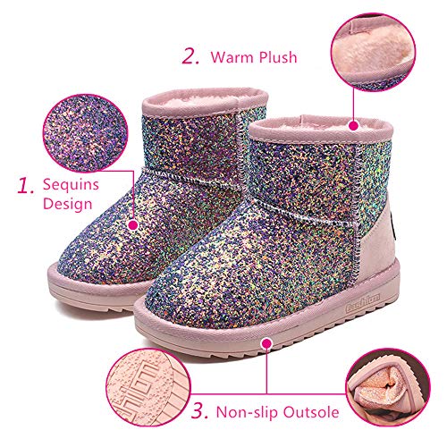 Dayiss Girls Snow Boots Girl's Warm Plush Comfortable Sequin Sparkly Waterproof Outdoor Princess Winter Boots for Girls 3