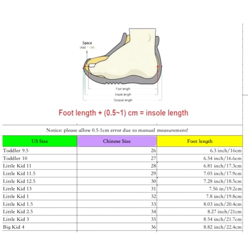 • Please Check the size details on descriptions to choose your kids size,the child's feet grow fast,we suggest you choose one size larger.Thanks!