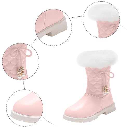 Girls' Tall Riding Boots Warm Leather High Boots Non Slip Flat Heel Side Zipper Winter Mid Calf Shoes 4
