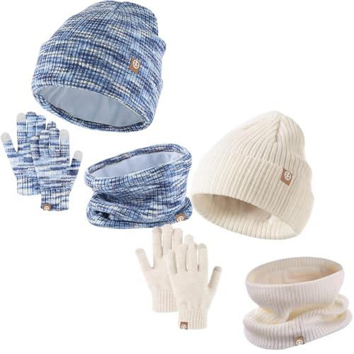 Yeory Kids Winter Hat, Hat and Scarf Sets for Kids, Kids Beanie Hat Scarf Gloves Set, Knit Toddler Scarf Beige White, Knitted Beanie Hats 4