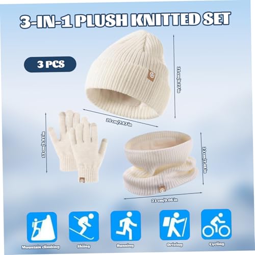 Yeory Kids Winter Hat, Hat and Scarf Sets for Kids, Kids Beanie Hat Scarf Gloves Set, Knit Toddler Scarf Beige White, Knitted Beanie Hats 3