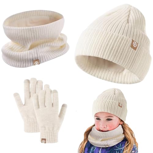 HOT ! Yeory Kids Winter Hat, Hat and Scarf Sets for Kids, Kids Beanie Hat Scarf Gloves Set, Knit Toddler Scarf Beige White, Knitted Beanie Hats
