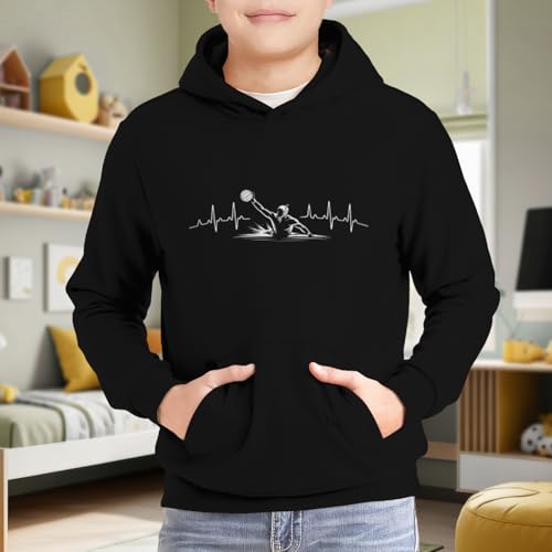 Kids Vintage Water-Polo Heartbeat Boys Girls Lightweight Kangaroo Pocket Fleece Hoodies