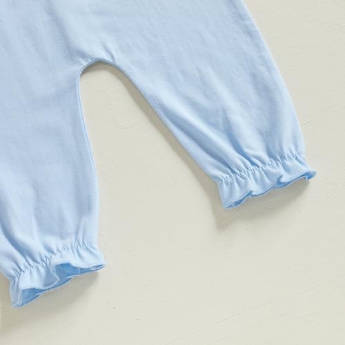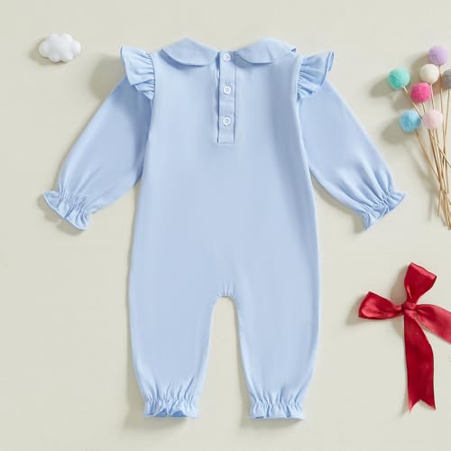 • Design: Baby girl romper jumpsuit features doll collar, ruffle long sleeve, pink bow embroidery; The cuffs and pant legs are elastic, and there are buttons on the back for easy on and off; Peter pan outfit baby girl, bow onesie baby girl, makes your princess so sweet and stand out in the crowd