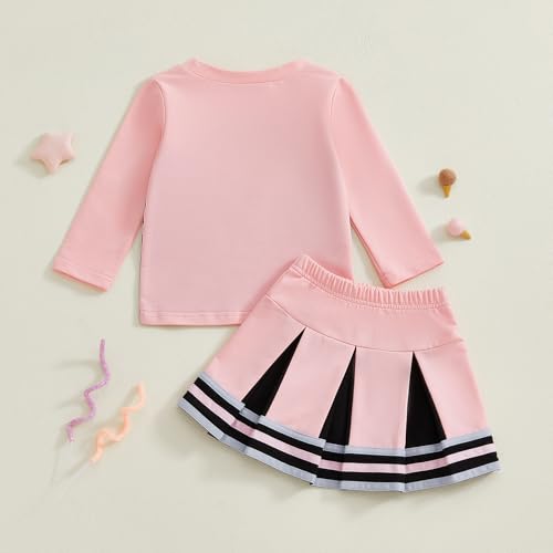 Toddler Baby Girl Cheerleader Outfit Long Sleeve Shirt Tops Pleated Skirt Set Cheer Uniform Football Clothes Fall 2