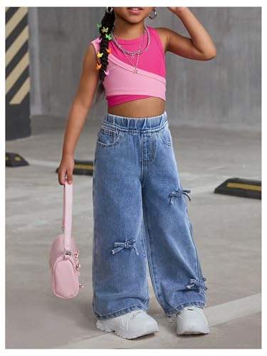 Why Choose WDIRARA Girls' Bow Decor High Waisted Jeans Straight Leg Elastic Casual Denim Long Pants?
