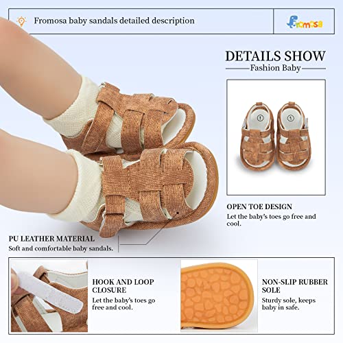 HOT ! Infant Baby Boys Girls Summer Sandals Brown Newborn Lightweight Pu Leather Non-slip Rubber Sole Toddler Outdoor Beach Open Toe First Walker Shoes 12-18 Months