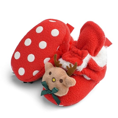 sfdgfhyf Cartoon Shoes for Toddler Infant Christmas Booties Soft Baby Santa Winter Warm Fleece Slippers Snow Boots Crib 6