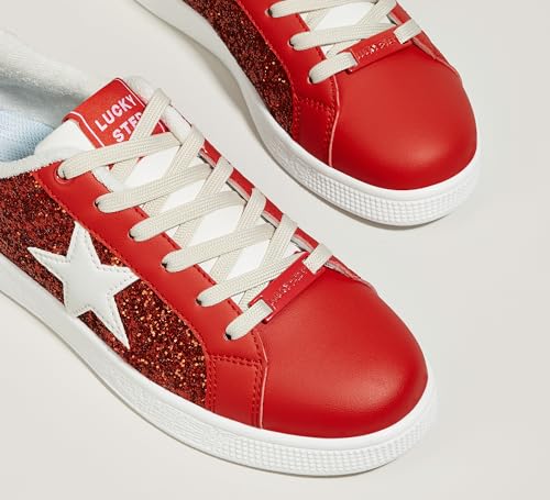 LUCKY STEP Women's Fashion Star Sneaker Lace Up Low Top Comfortable Cushioned Walking Shoes 5