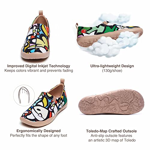 UIN Women's Slip Ons Canvas Lightweight Flats Sneakers Walking Casual Loafers Comfortable Art Painted Travel Shoes Wonderland (7.5)