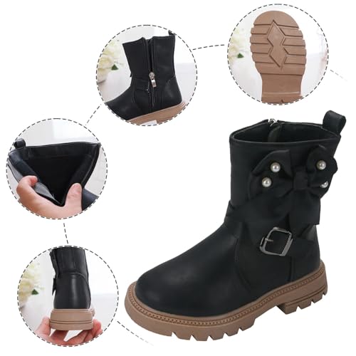 Girls Dress Boots Kids Toddler Cute Pearls Bowknot Princess Boots Fashion Buckle Design Side Zipper Mid Calf Boots