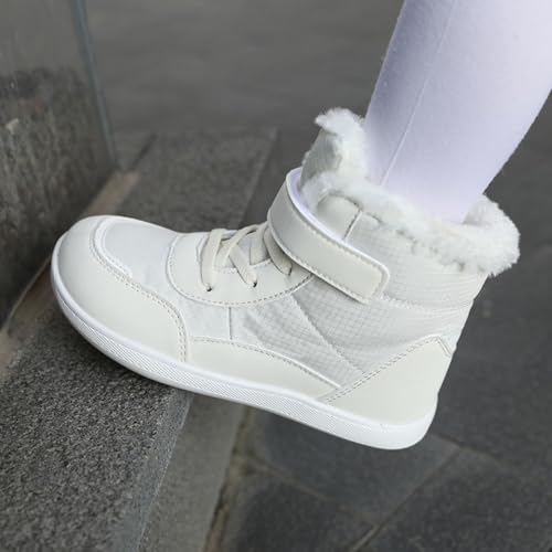Kids Barefoot Winter Snow Boots Toddler, Children's High Top Plus Velvet Thick Wide Head Cotton Shoes Outdoor Warm Hiking Boots For Boys Girls