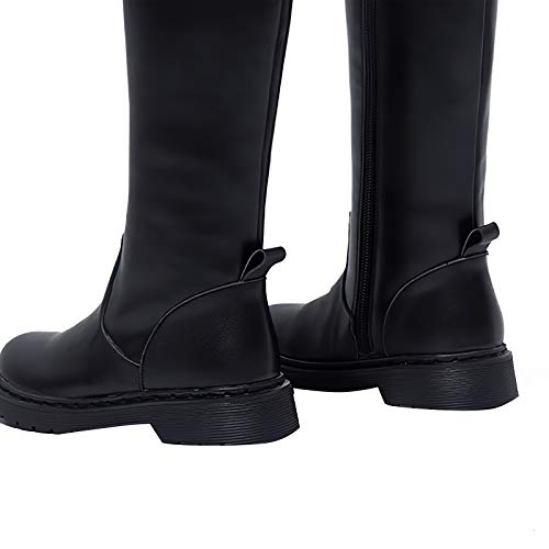 Girl's Genuine Leather Zipper Knee Boots Kid's Warm Fluffy Lining Winter Boots 5