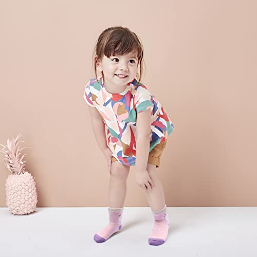 • 【NON-SLIP GRIPPER TODDLER SOCKS】 Strong gripper at the bottom covers the whole foot from heel to toe, these socks for girls provides great traction to prevent your kids from slipping on the hardwood floors or tile floors. Provide more safty when your girls walking, running, crawling on floor, or playing on the slider of trampoline.