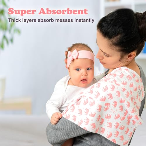 • Extra Coverage with 12 x 16 Inch Size: Each burp cloth measures a generous 12 x 16 inches, offering wide shoulder and chest coverage to protect clothes and keep feeding time stress-free. The durable double-layer design prevents bunching or slipping.