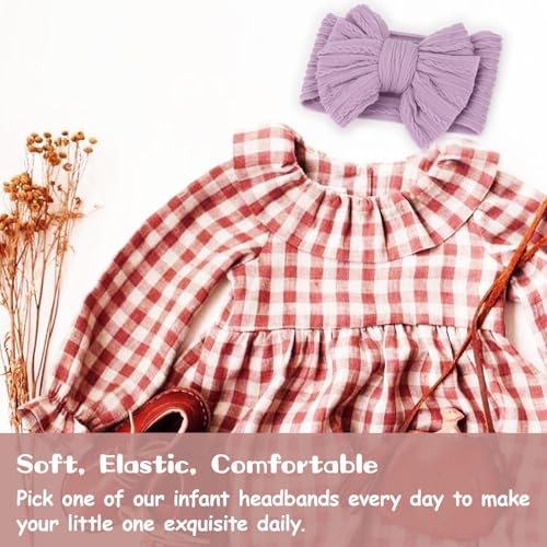 • Adorable Design: Cute baby wearing cute bow headband equals double cuteness. Threaded texture and wide bands are easier to wear and hold their shape. Our baby headbands are handmade, delicate and safe.