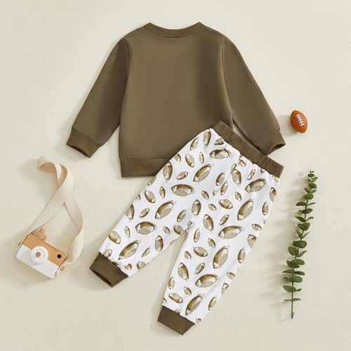 Toddler Baby Boy Football Outfit Long Sleeve Football Embroidery Print Sweatshirt Jogger Pants 2PCS Fall Clothes Set 4