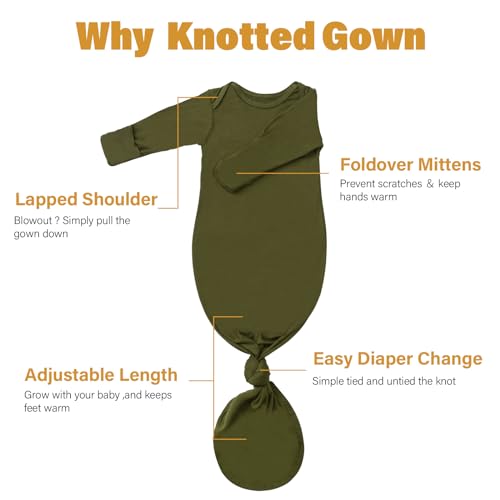 • [ULTRA SOFT & COZY] - Made with 95% modal,5% Spandex. BozenTek knotted gown for baby newborn is buttery soft, gentle to baby's delicate skin. Keeps your baby cozy and secure with premium, stretchy material that feels like a warm hug from mommy.
