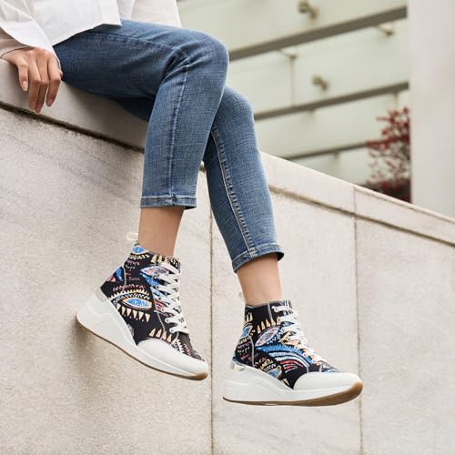 Cestfini Graffiti High Top Sneakers for Women Breathable White Black Platform Sneakers Lace up Womens Canvas Shoes 6