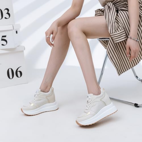 High Platform Sneakers for Women Hidden Heel Wedge Sneakers Dressy Fashion Wedge Tennis Shoes Increasing 3.94 inches 3