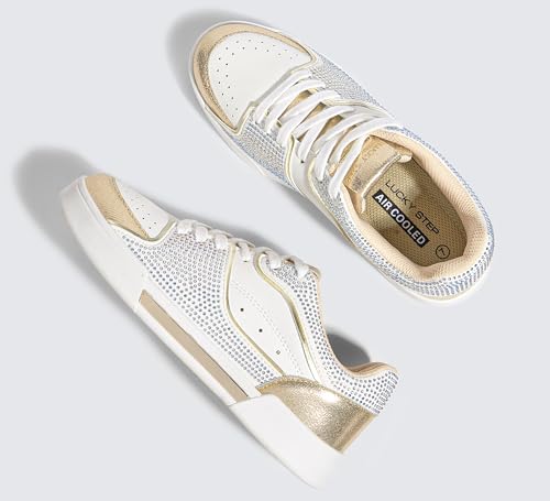 LUCKY STEP Women's Rhinestone Sneakers Sparkly Bling Glitter Wedding Tennis Shoes Fashion Casual Walking Comfortable Shiny Footwear 6