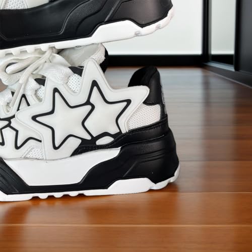 Women Chunky Sneakers, Star Decor Dad Shoes, Unisex Couples Girls Oversize Thick Sole School Casual Wear Lace-Up Mesh Upper 6
