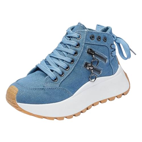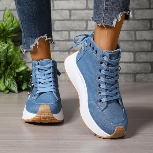 High Heel Wedge Sneakers for Women Fashion Lace up Canvas Casual Shoes Womens Platform High Top Canvas Sneakers Metal Zipper Flatform Arch Support Comfortable Running Sports Shoes