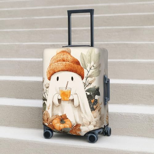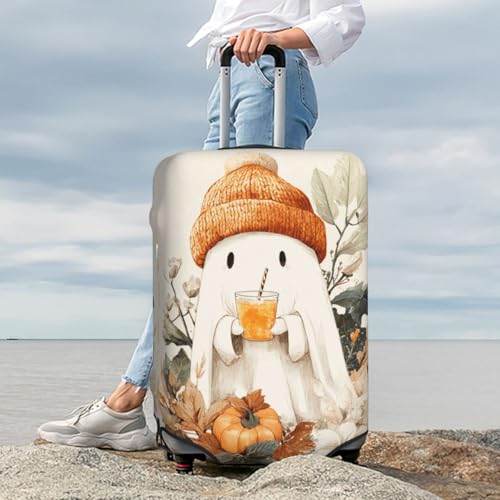 Halloween Cute Ghost Autumn Leaves Flowers Elastic Travel Luggage Covers Dustproof Scratch-Resistant Suitcase Protector Fit 22-24 Inch 7
