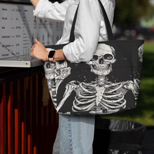 Funny Skull Beach Bags For Women, Human Skeleton Large Waterproof Tote Bag Sandproof Pool Bag Handbag For Travel Work Gym