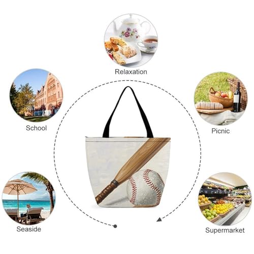 Hand Drawn Baseball Bats And Ball Tote Bag Shoulder Shopping Bag Reusable Grocery Bag for Travel Work Friendship Gift 4